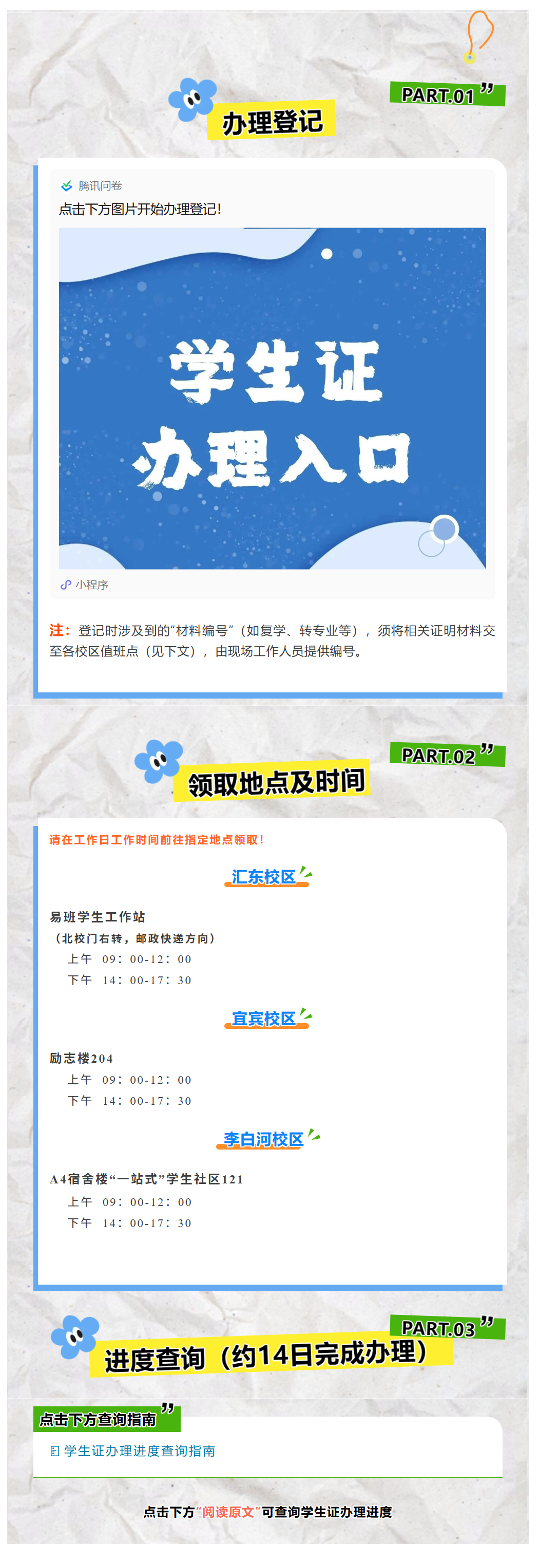 关注“川轻化学工”公众号,点击“事务办理”-“学生证办理登记”
