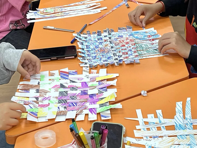 情绪有明有暗,而这次我们邀请你将它们一同织进画面。参与者分别用明亮色彩描绘“安心时刻”,用深沉色调表达“压抑瞬间”,再将两种画面的纸条拆解、交错、重组,亲手编织成全新作品。“当我把自己画的开心与烦恼编在一起,才发现它们并不冲突,”一位同学展示着她的作品,“亮色与暗色交织,反而让画面更有层次和温度。”这个过程,像一次无声的内心对话——它告诉我们,所有情绪共同构成了真实而完整的我们。